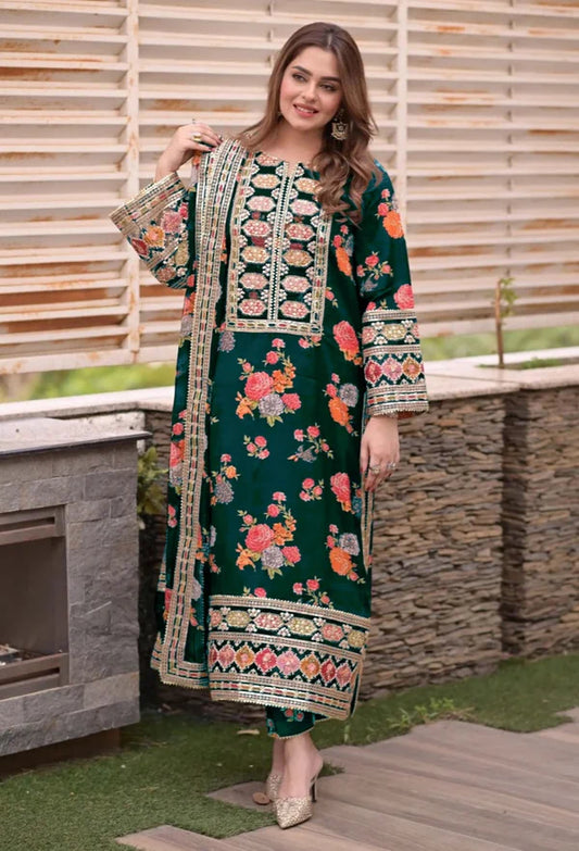 Sheenora Green Digital Printed Silk Collection