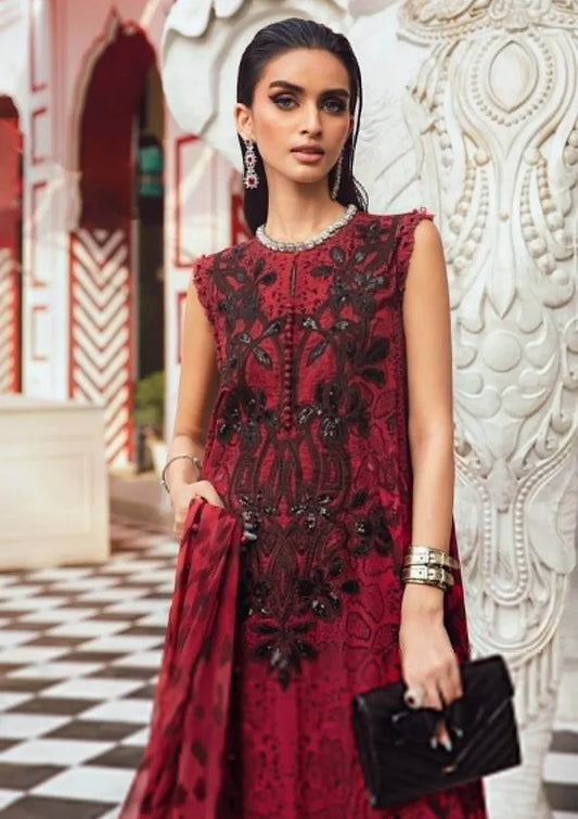 Maria B Red & Black 3 Piece Unstitched Linen Suit MPT-2702-A