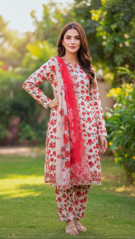 3 Piece Unstitched Embroidered Lawn Suit